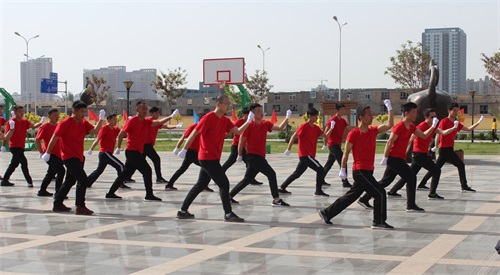開(kāi)幕式上由新眾城集團(tuán)30名青年突擊隊(duì)員表演的軍體拳,動(dòng)作整齊劃一、剛勁有力,將開(kāi)幕式推向高潮。